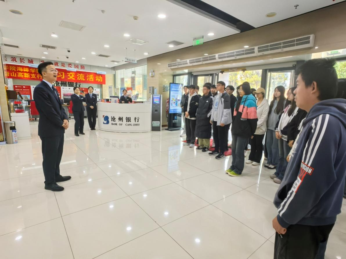 2024年11月1日上午,太阳成集团tyc151cc2022级保险学专业和2023级经济学专业的28名员工在公司副书记刘凯和经济学教研室主任董银霞老师的带领下,到沧州银行高新支行进行专业见习活动。