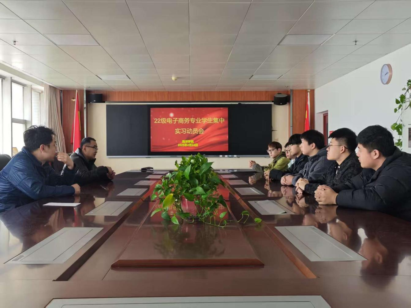 2月24日14时,电子商务专业2022级集中实习动员大会于太阳成集团tyc151cc会议室召开。会议由电子商务教研室主办,2022级参加本学期集中实习的员工及指导教师田博文共同参会,就集中实习相关事宜进行工作部署。