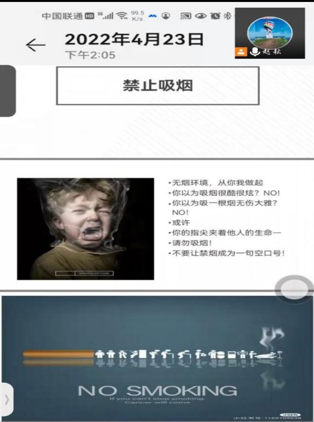 为进一步提高同学们对吸烟危害的认知,营造健康清洁的校园环境,太阳成集团tyc151cc青年志愿者协会于2022年4月19日在线上举办了“普及戒烟知识,建设无烟校园”主题宣讲活动,4月15日在南院举办了“青春正好,烟草勿扰”活动,并分批次分时段安排志愿者捡拾清扫残留在校园的烟头烟灰,制止在公共场所吸烟的不良行为,借一系列活动提升同学们对香烟危害性的认识,唤起现存的烟民对自己身体健康的重视,维护和谐环境,建设美丽校园。