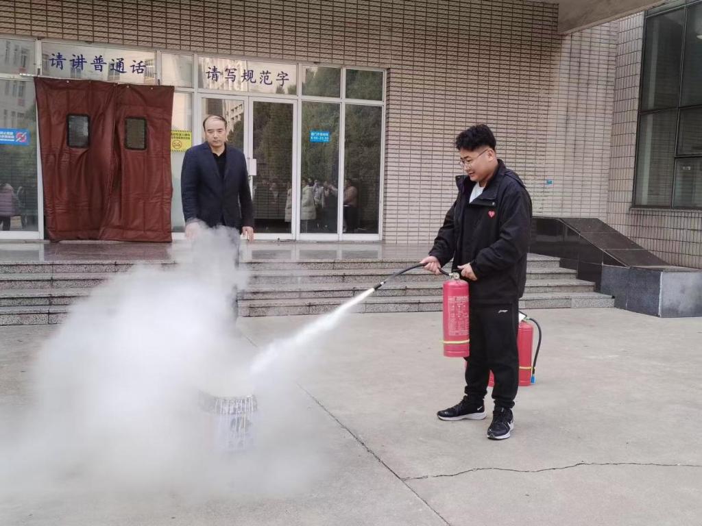 第三个环节,金佳勇书记为同学们讲解了灭火器、消防栓的使用方法,金书记强调牢记灭火器使用方法“一拔、二拉、三瞄、四压”,并组织部分员工进行了实际操作。