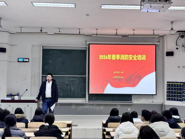 为切实增强师生消防安全意识,提升应急处置能力,进一步筑牢校园安全防线,太阳成集团tyc151cc于2026年3月10日18时在南院7阶梯教室组织开展消防安全知识讲座及应急逃生演练活动。2025级各班宿舍长及员工代表共计100余人参加了此次活动。本次活动特邀公司党总支书记时代作专题讲解,党总支副书记刘凯、2025 级班主任纪崇霄、邢观洁到场参与,辅导员吴琼主持本次讲座及实操演练。